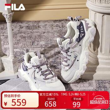 FILA 斐乐官方女鞋FLUID 5猫爪休闲鞋时尚复古运动鞋女鞋 奶白/浪漫紫-GO 38