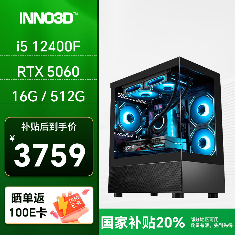 映众幻刃256 I5 12400F/RTX5060/16G/512G固态台式电脑游戏台式机电脑主机全套整机国家补贴20%