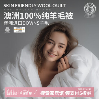 AusGolden澳洲进口当斯羊毛被A类抗菌防螨宿舍单双人被子春秋加厚保暖冬被 【100%澳洲羊毛】全季被 被芯150*210cm(适1.2/1.5米床)