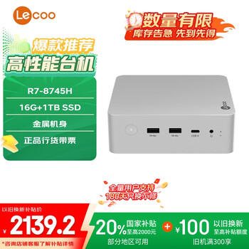 联想(Lenovo)来酷MINI PRO主机商务迷你台式机电脑(R7-8745H 16G 1TB SSD)水月银