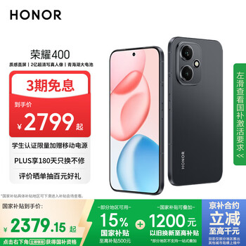 荣耀400 AI 2亿超清写真人像 7200mAh青海湖大电池 12+512 幻夜黑 5G AI 新款 学生 拍照手机 国家补贴