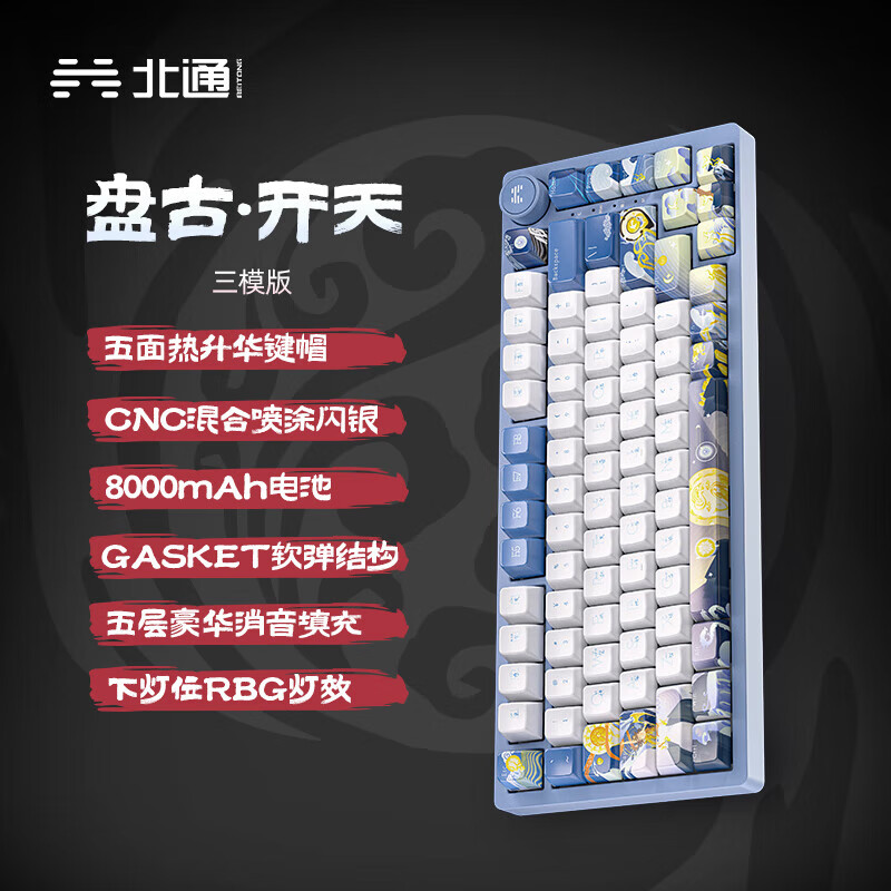 北通国风三模游戏键盘 神话75客制化机械键盘 铝坨坨 无线蓝牙GASKET游戏电竞办公台式笔记本电脑通用 盘古·开天【雨滴轴】