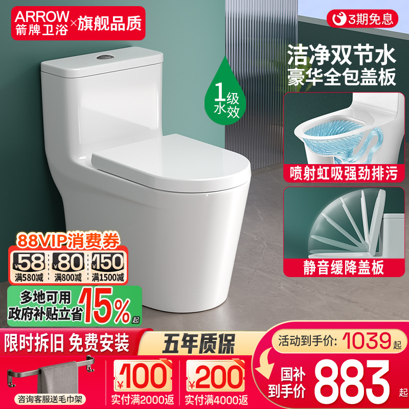 政府补贴马桶丨箭牌马桶官方旗舰店家用大冲力虹吸式卫生间坐便器