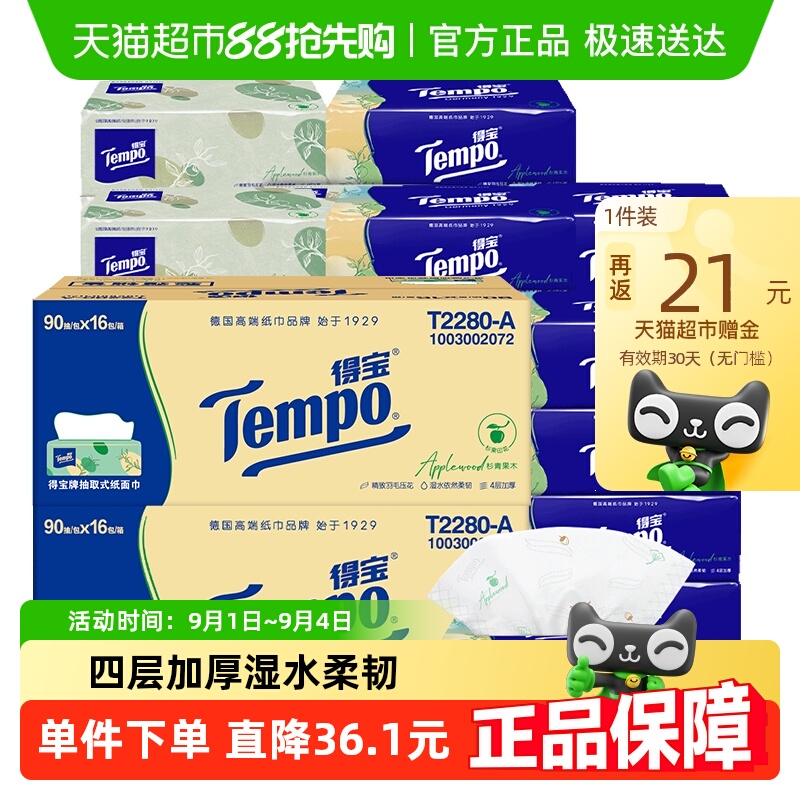 Tempo/得宝软抽纸巾四层加厚家庭箱装卫生纸(多类型任选)