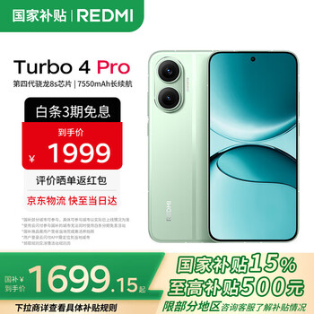 小米(MI)REDMI 红米Turbo4 Pro 国家补贴 第四代骁龙8s 7550mAh长续航 IP68防水 小米红米新品5G手机 绿色 12GB+256GB 【官方标配】