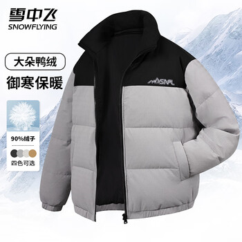 雪中飞羽绒服冬季女士立领防寒拼接撞色纯色简约休闲肌理感面料羽绒外套 灰色【男女同款】 175/92A