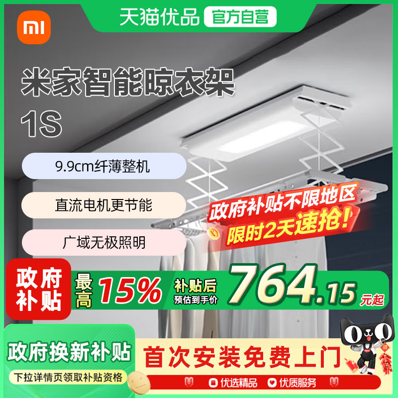 小米米家智能晾衣机1S电动晾衣架阳台自动升降照明小爱语音遥控A