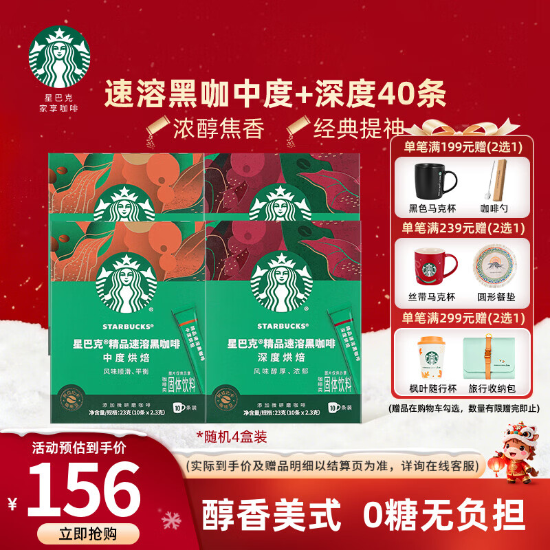星巴克(Starbucks)黑咖啡粉0蔗糖低脂经典美式咖啡粉特选研磨精细醇厚 【老客必囤-盒装】随机2.3g*40条