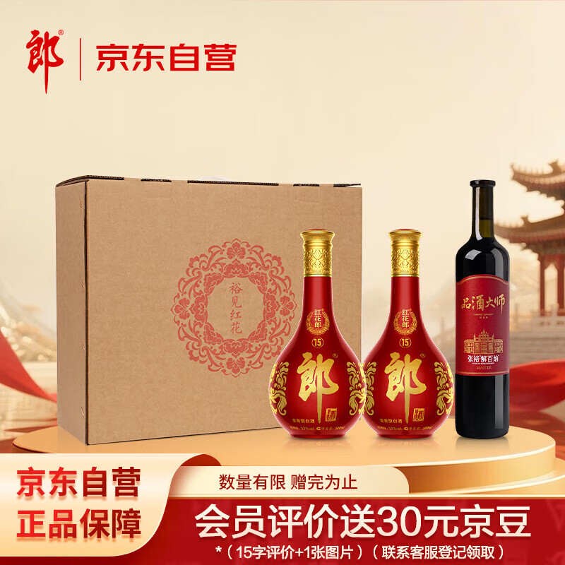 郎酒【裕见红花】红花郎15 53度 500ml*2+张裕解百纳 750ml*1