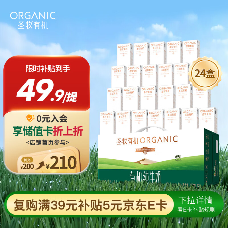 圣牧【新鲜日期】有机纯牛奶 品醇200ml*24盒 安全纯净 早餐奶