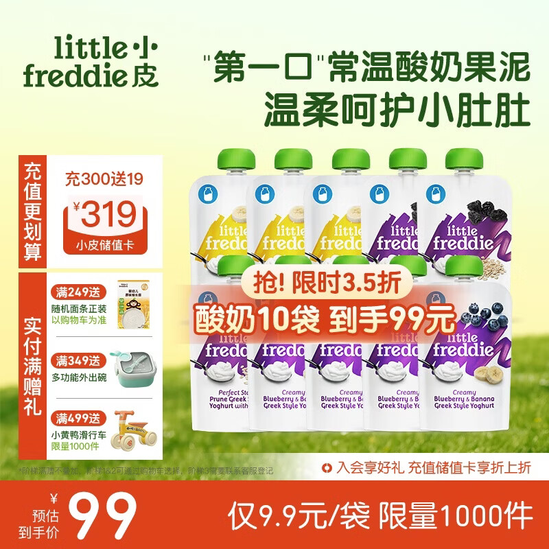 小皮(Little Freddie)多口味儿童常温酸奶水果泥100g*10袋 发酵乳西梅泥 宝宝酸奶果泥