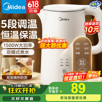 美的(Midea) 【国家补贴】电热水壶 热水壶 家用大容量不锈钢烧水壶双层防烫 一体无缝内胆电水壶开水壶 1.5L 【304不锈钢恒温保温一体】-最新款