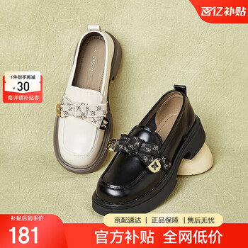 百思图商场同款时尚学院蝴蝶结乐福鞋女单鞋WA399AA4 黑色 36