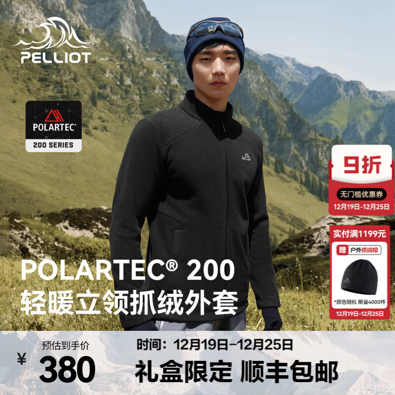 伯希和(Pelliot)Polartec200抓绒衣男女秋冬摇粒绒保暖外套冲锋衣内胆开衫夹克 【男款】漫暮黑 | 顺丰包邮 XL