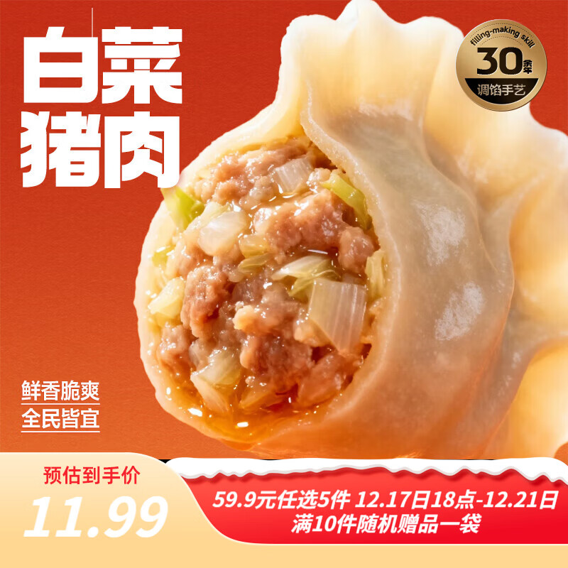 三全黄金比例水饺白菜猪肉蔬菜玉米饺子煎炸蒸早餐速冻水饺面点懒人 白菜猪肉饺子 约18只 400g