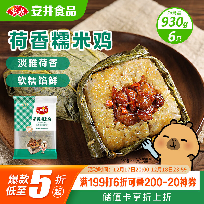安井 荷香糯米鸡 930g 6只装 广式荷叶鸡饭团 速冻面点 早餐半成品