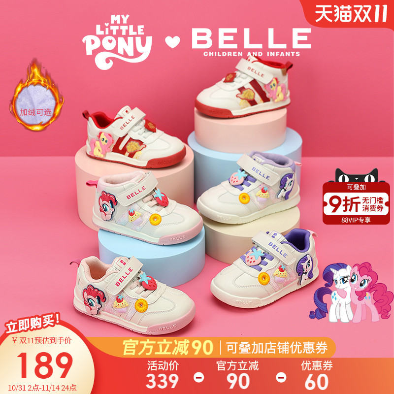 百丽童鞋小马宝莉联名宝宝运动鞋秋冬加绒女童板鞋儿童卡通休闲鞋