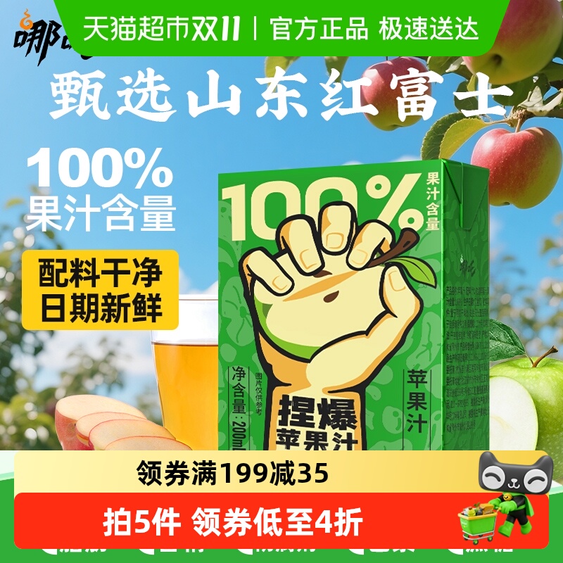 哪吒捏爆百分百苹果家庭囤货装早餐下午茶果蔬汁饮料品含vc零添加