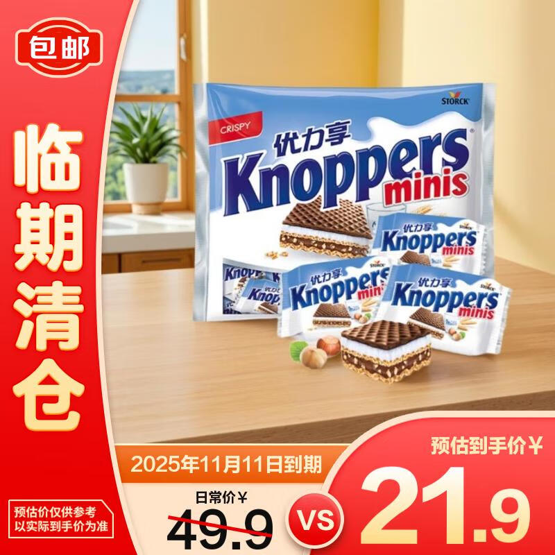 knoppers优力享德国进口牛奶巧克力威化饼干192g*1(20小包)【临期清仓】