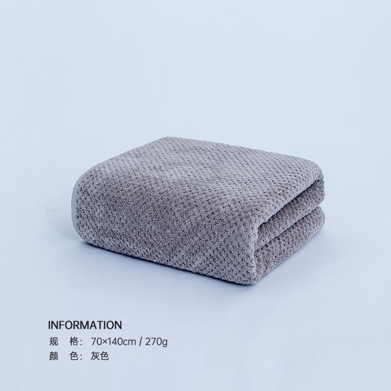 三利浴巾 A类珊瑚绒柔软吸水菠萝格浴巾干裹巾 70*140cm 灰色