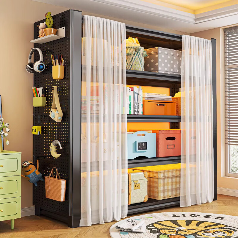 纳份爱开放式货架衣柜出租房挂衣架家用卧室衣帽架收纳架落地钢制置物架 黑色- 3层 80CM高【果绿色联系客服备注】 长50×宽30cm