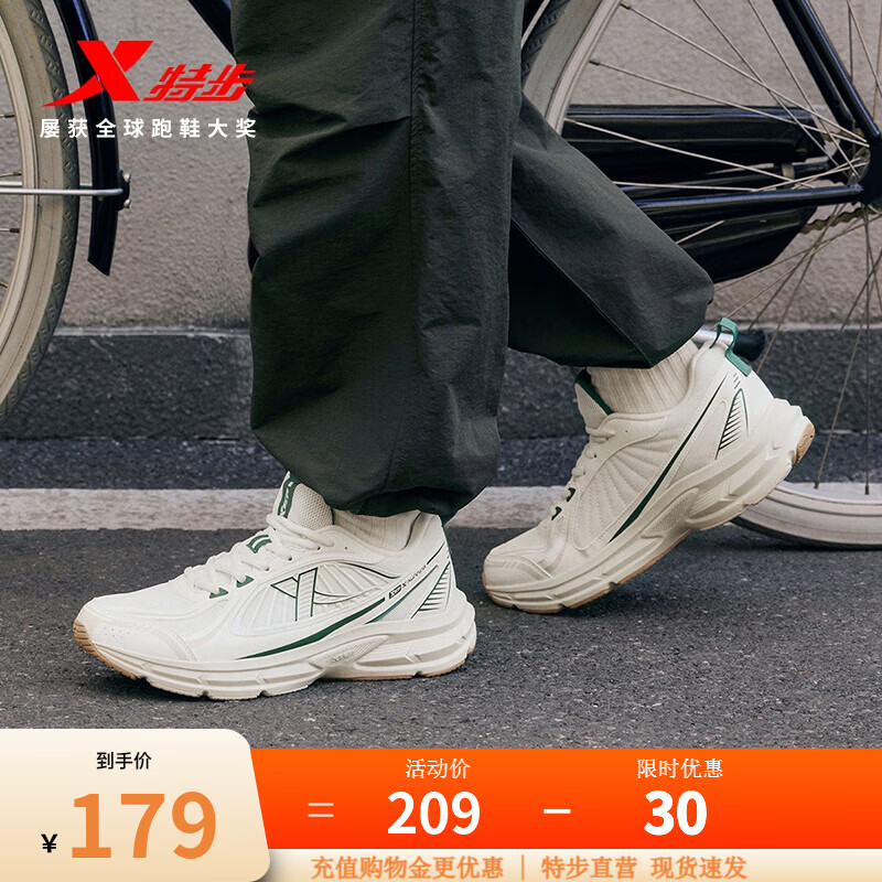 特步(XTEP)绝尘6.0跑步鞋男女情侣同款潮流百搭透气舒适防滑耐磨运动休闲鞋 帆白/丝绒松木色-男 41