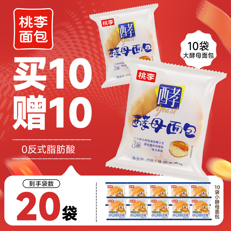 桃李酵母面包牛奶蛋羹味组合共20袋1080g早餐软面包蛋糕点心零食整箱