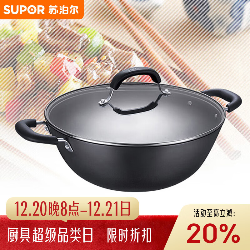 苏泊尔SUPOR铸铁双耳无涂层深型炒锅36CM耐磨铁锅燃气电磁炉通用FC36Y1