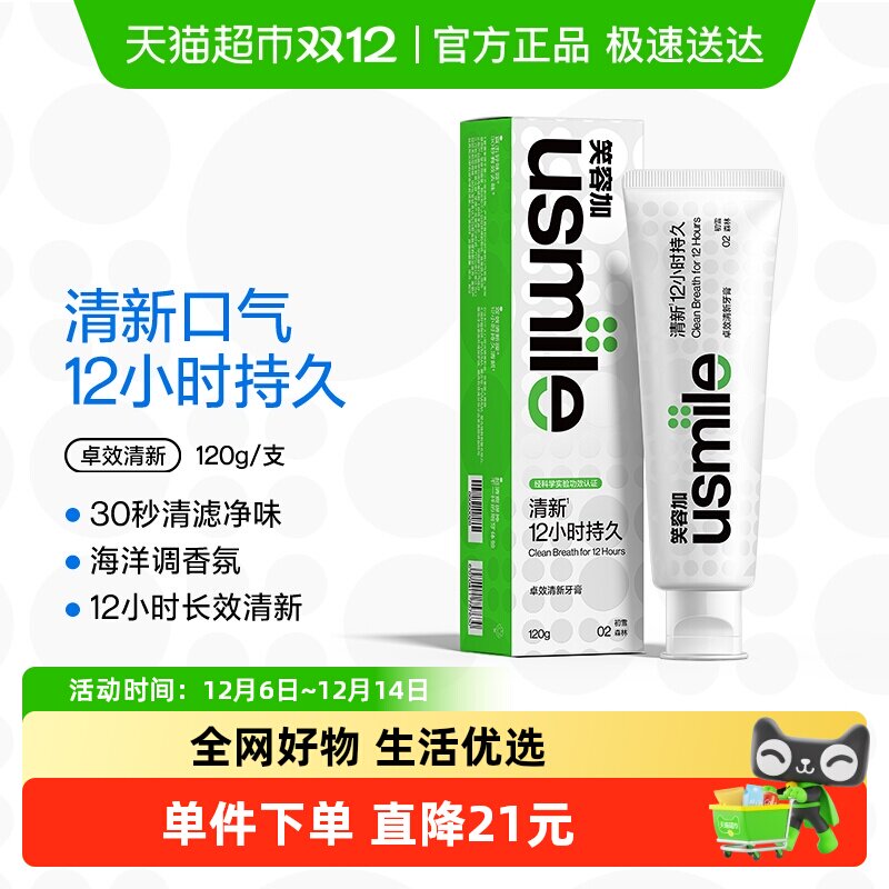 笑容加usmile卓效清新牙膏清新清洁口腔牙齿亮白减少牙渍