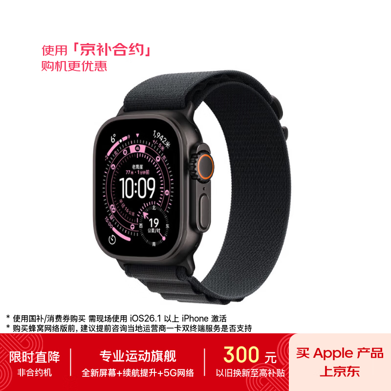 Apple/苹果WatchUltra3智能手表蜂窝款49毫米黑色钛金属表壳黑色高山回环式表带S-联通补贴