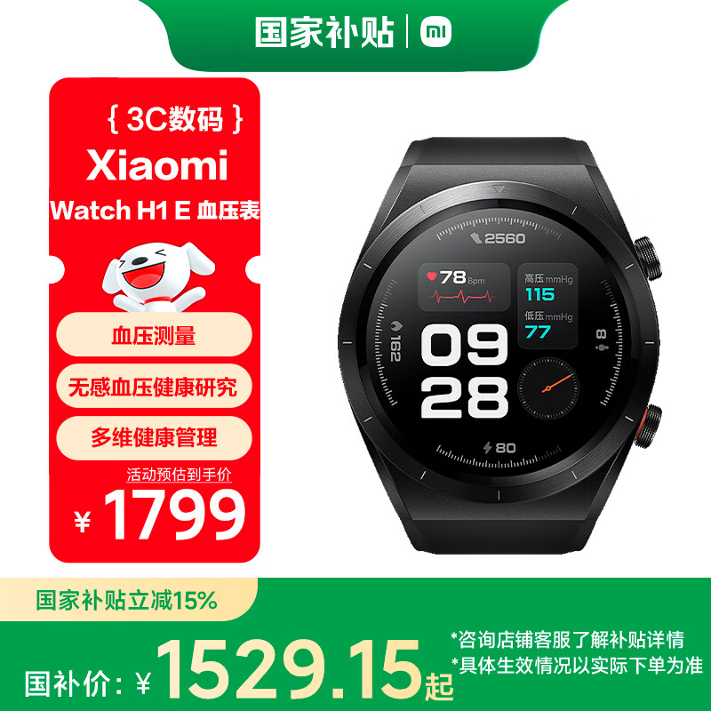 小米(MI)腕部血压记录仪 国家补贴 小米血压手表 血压测量 全天血氧监测 智能手表 Xiaomi Watch H1 E