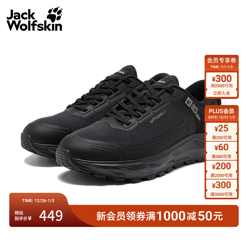 jackWolfskin狼爪25秋冬新款情侣户外休闲多功能徒步放风鞋徒步运动鞋4065441 黑色/6000 40