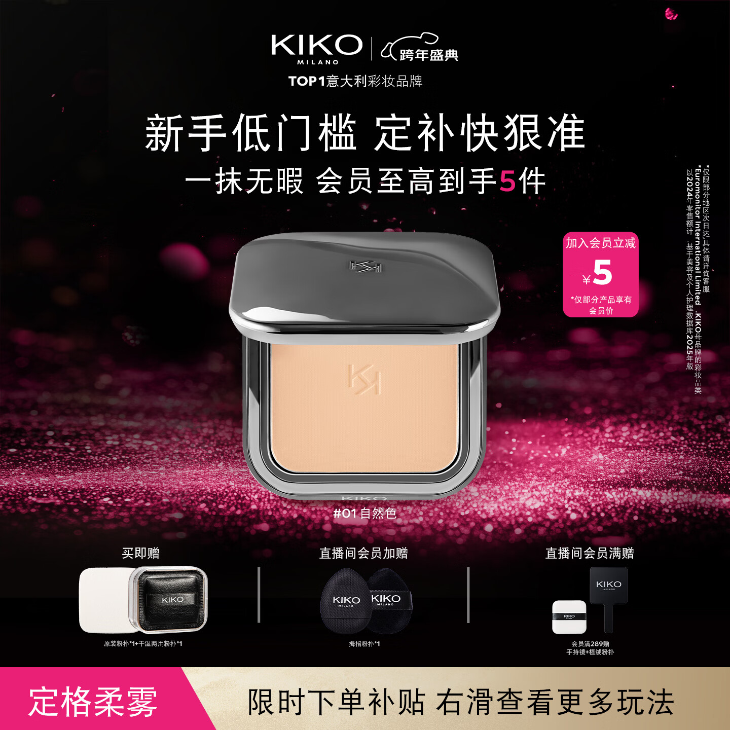 KIKO 自然哑光雾面粉饼-01自然色12g/盒 遮瑕定妆送女友圣诞礼物