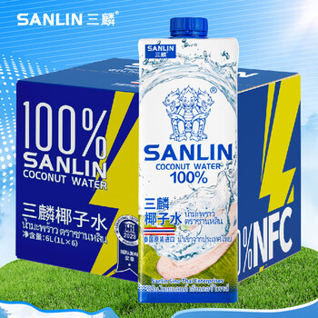 三麟100%天然椰子水1L*6瓶 富含天然电解质NFC椰青果汁 泰国原装进口
