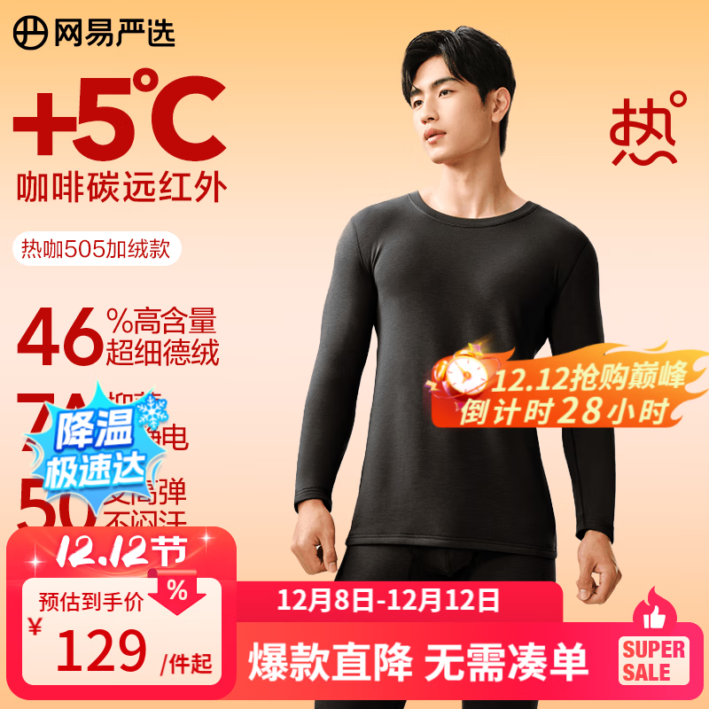 网易严选热咖505PRO加绒加厚保暖内衣46%德绒咖啡碳7A抗菌230g秋衣秋裤 A款7A抑菌-石涅黑-男 XL