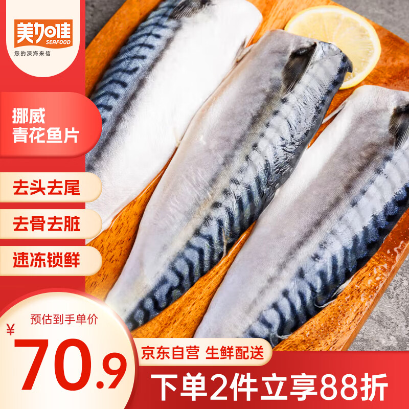 美加佳挪威青花鱼片净重2斤(8-10片)独立包装 去头去尾去脏