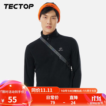 探拓(TECTOP)抓绒衣 户外加厚保暖男抓绒衣纯色立领半开衫柔软舒适抓绒衣 MZRY033 男款黑色 XL
