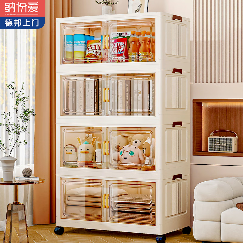 纳份爱【德邦入户】80cm可折叠收纳箱大容量免安装可移动衣物整理收纳柜 【超值补贴】50面宽/透茶色 五层【搬家囤货必备大容量】