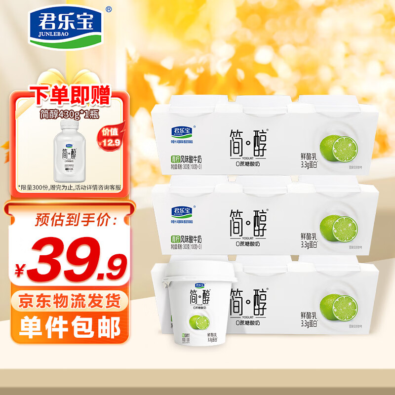 君乐宝(JUNLEBAO)简醇 0蔗糖 青柠鲜酪乳100g*9杯 风味酸牛奶 3.3g蛋白源头直发