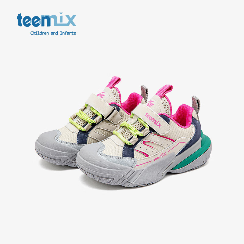 天美意天美意童鞋女童运动鞋男童鞋子2024秋冬新款儿童老爹鞋软底跑步鞋 奶咖米/玫瑰红 26