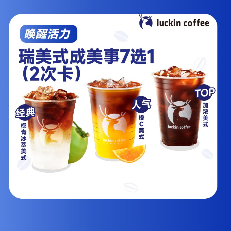 瑞幸咖啡【PLUS专享】瑞美式成美事7选1(2次卡) 大杯 15天有效 限自提