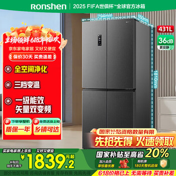容声431升十字对开门一级能效超薄变频风冷无霜大容量节能低噪家用四开门十字门冰箱 国家补贴20% BCD-431WD12FP 星蕴