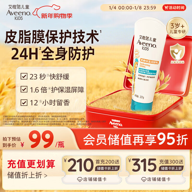 艾惟诺(Aveeno)艾维诺儿童润肤乳3-6-12岁 青少年燕麦补水保湿身体乳227g