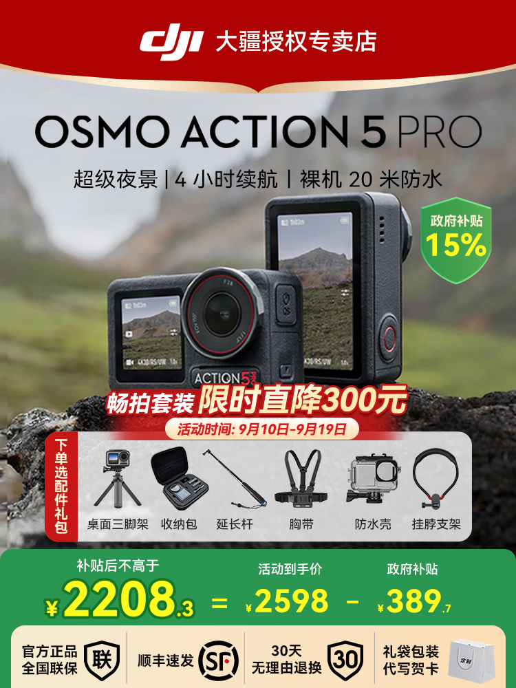 【政府补贴15%】DJI Osmo Action 5 Pro 运动相机 4K旗舰画质旅拍