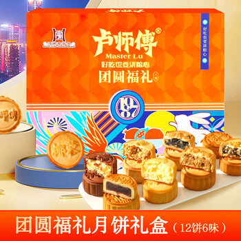 卢师傅 月饼礼盒团圆福礼6味12饼椰蓉巧克力五仁黑芝麻红枣红豆花生456g