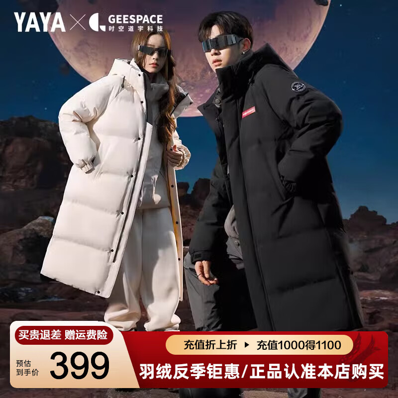 鸭鸭(YAYA)时空道宇联名羽绒服男女同款长款加厚2025最新款冬季时尚保暖外套 星空黑色 2XL 185/100A【建议175-195斤】