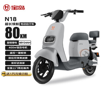 宝岛电动自行车新款N18锂电48V24Ah星恒锂电长续航80km豪华外观代步首选 物语灰