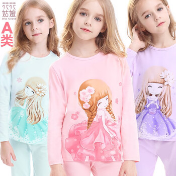儿童秋衣套装棉女童内衣春秋薄款棉秋裤夏季家居服女大童睡衣 长袖【百合姑娘】紫色【A类国标品质】 140cm(参考身高135-145)