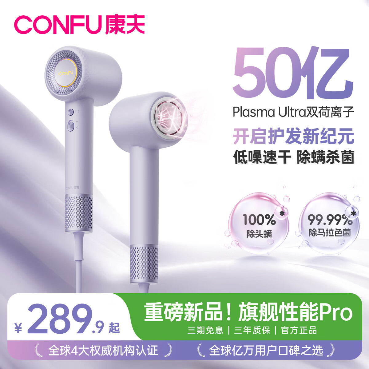 康夫(CONFU)高速电吹风机【重磅新品】家用大功率50亿等离子速干护发除螨杀菌生日礼物吹风筒F9Pro紫