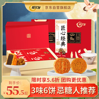 阿尔发无糖月饼 匠心经典 一星中秋月饼礼盒 糖尿老人糖醇国货月饼360g
